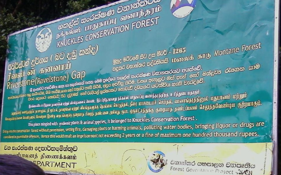The welcome board at Riverstone Gap in Knuckles Conservation Forest